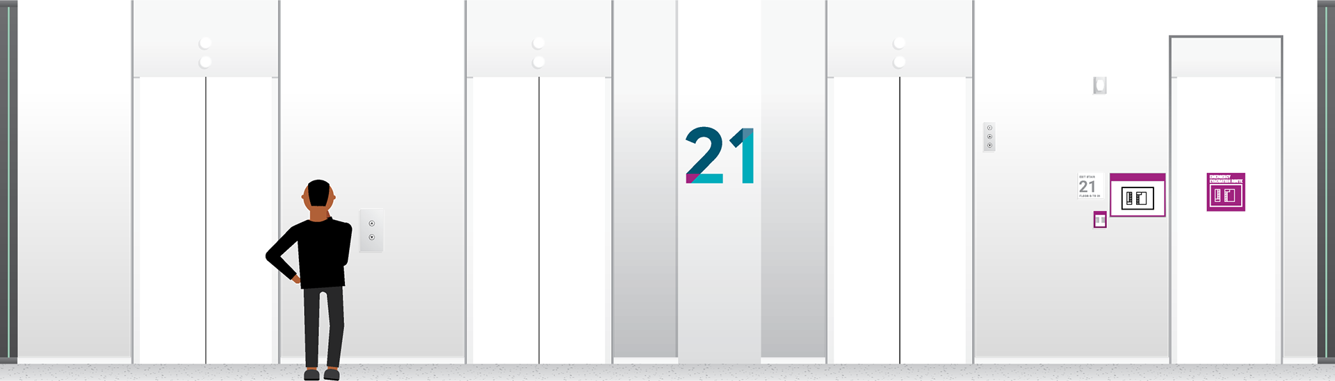When designing a large-format wall graphic, it’s import to consider graphic obstructions—door frames, signs, fire alarms, etc.—early in the design process.